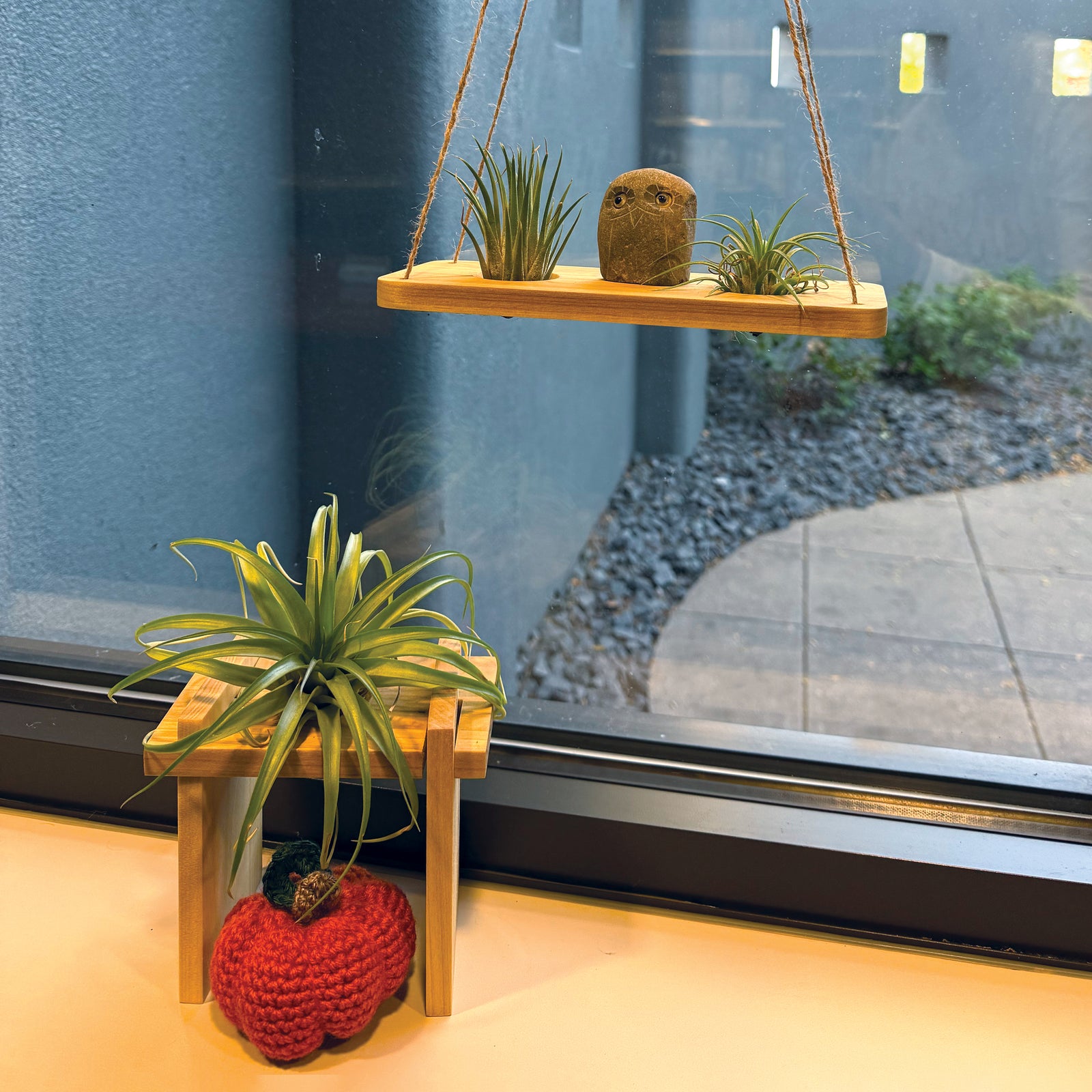 Add more structure and whimsy to your air plants by giving them new stands! The single air plant stand cube makes the perfect addition to any desk, bookshelf, or compact area to add a little greenery without taking up much space. The 2 air plant swing brings together a pair of air plants to make for interesting wall or window art.