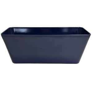 Worlds first Bamboo Fiber self-watering pot this 16" Indigo Rectangular self-watering planter is made from sustainable biodegradable all natural Bamboo Fiber and corn starch. Plants thrive in this natural Bamboo Fiber planter that is plastic free. The soil is better aerated by the unique water well in the base allowing better nutrient management helping the plants grow healthy and strong. These planters should be treated like ceramic suitable for use in hot or cold climates inside or outside. At initial planting water from the top until water is just below the overflow. Then periodically check the water level in the base and add water to the well from the bottom access or from the top of the planter. The soil draws water up from the well as needed using capillary action just like a wick. No more overwatering strong healthy plants is the result! Everyone gets a "green thumb" growing in bamboo planters and just by keeping water in the well! When you are finished with your planter just break it up and put into your compost bin. Over time the material will degrade back to nature.