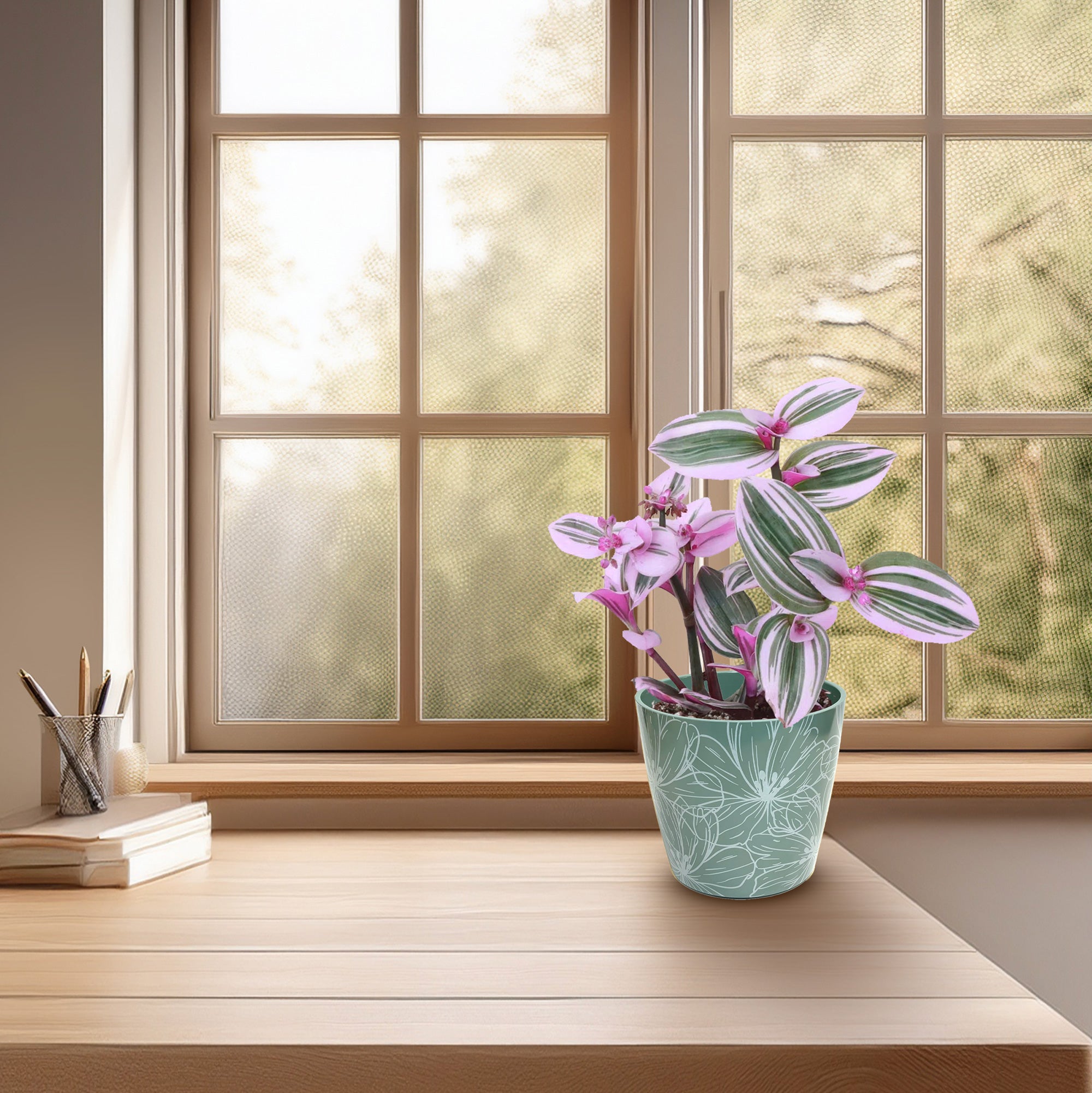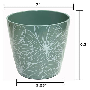 7" Cream Flower Round Bamboo Self-Watering Indoor/Outdoor Plant Pot
