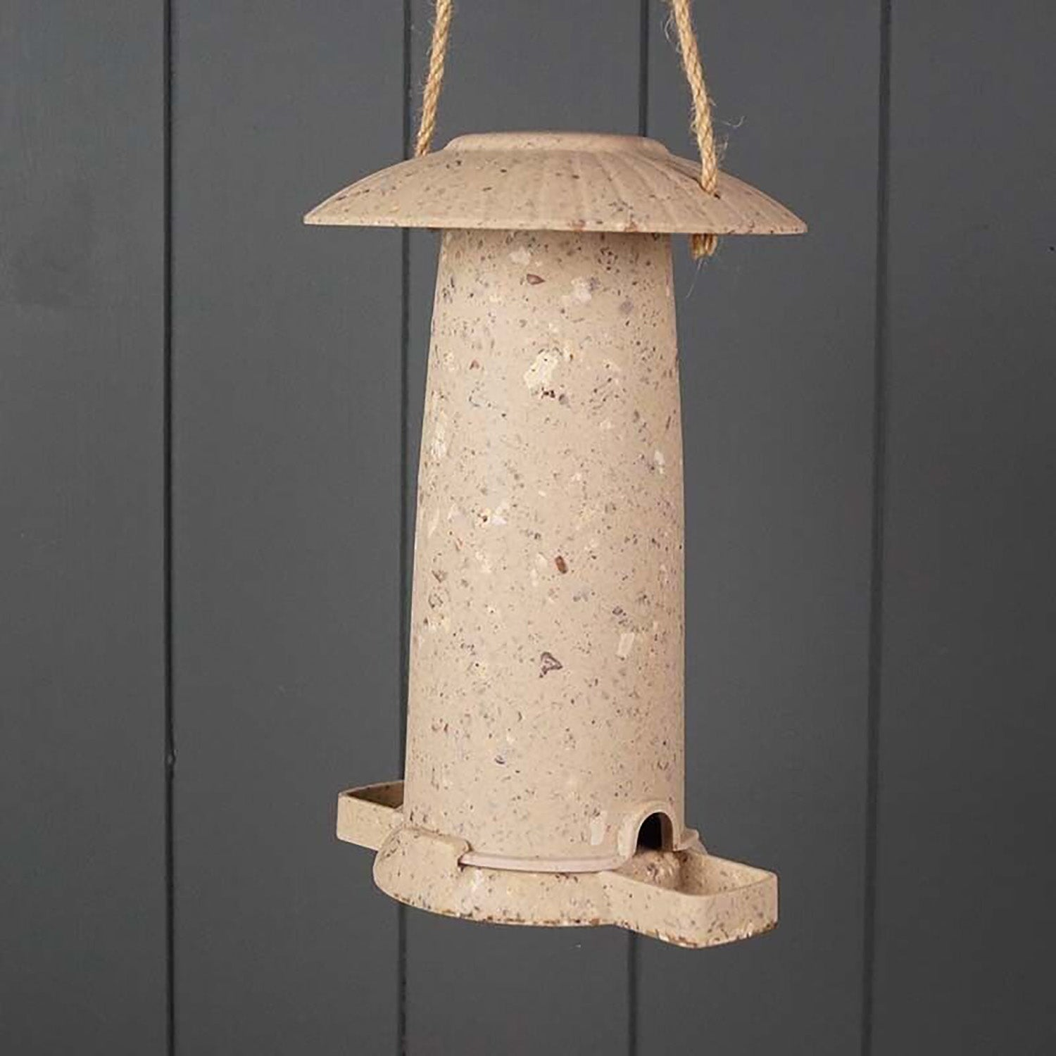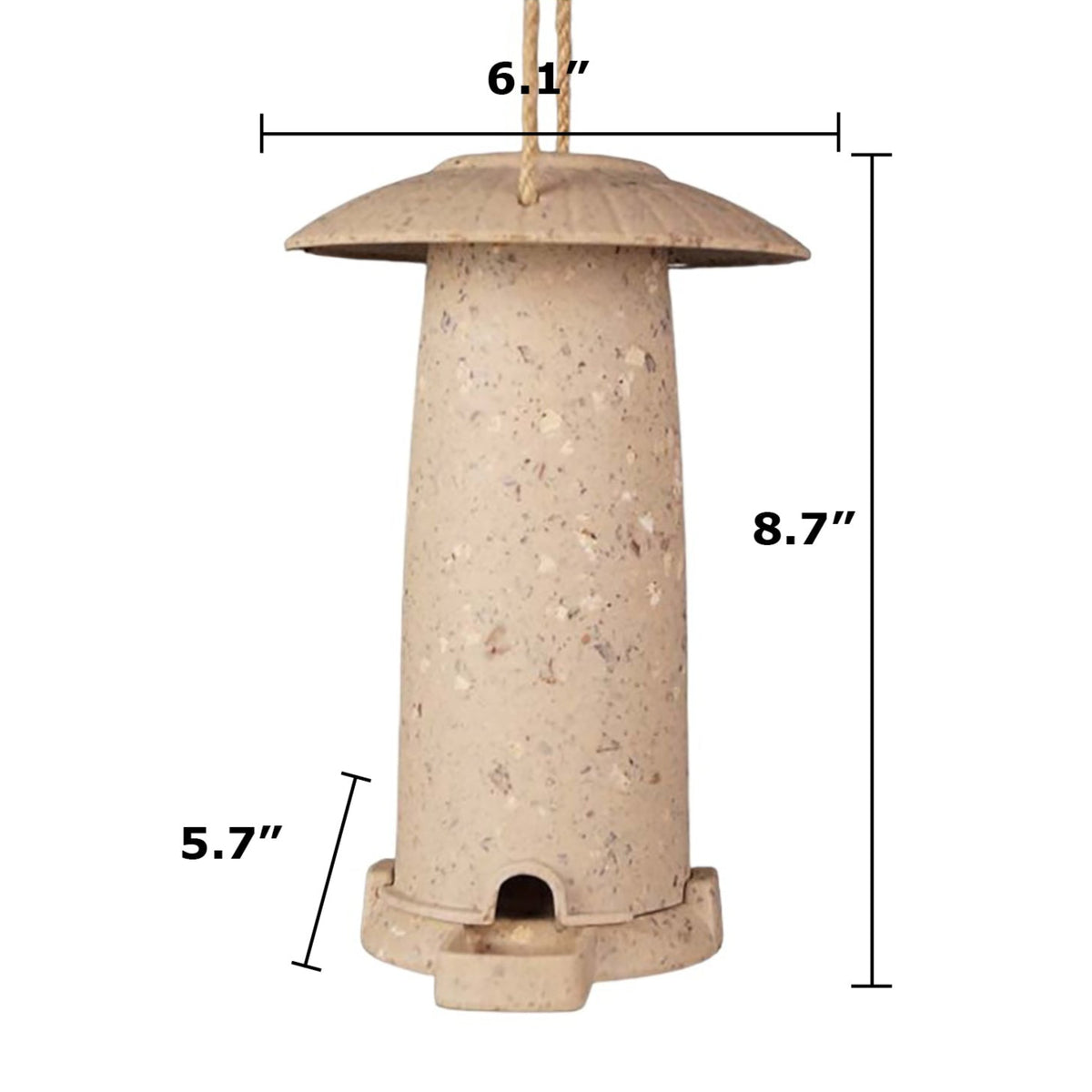 This unique Earthy Sustainable Seed Bird Feeder is made with Coffee Husks. Dimensions are 8.66" x 5.71" x 6.10". Globally abundant agricultural waste is being generated each day to fulfill the increasing demands of the fast-growing population. A lot of time energy and water goes into growing agricultural crops yet much of the resulting plant goes unwanted. The Earthy Sustainable range processes this agricultural waste blending it with resin. These products are frost proof and suitable for outdoor and indoor use. No animal-derived products used during the production of Earthy items making them vegan-friendly.
