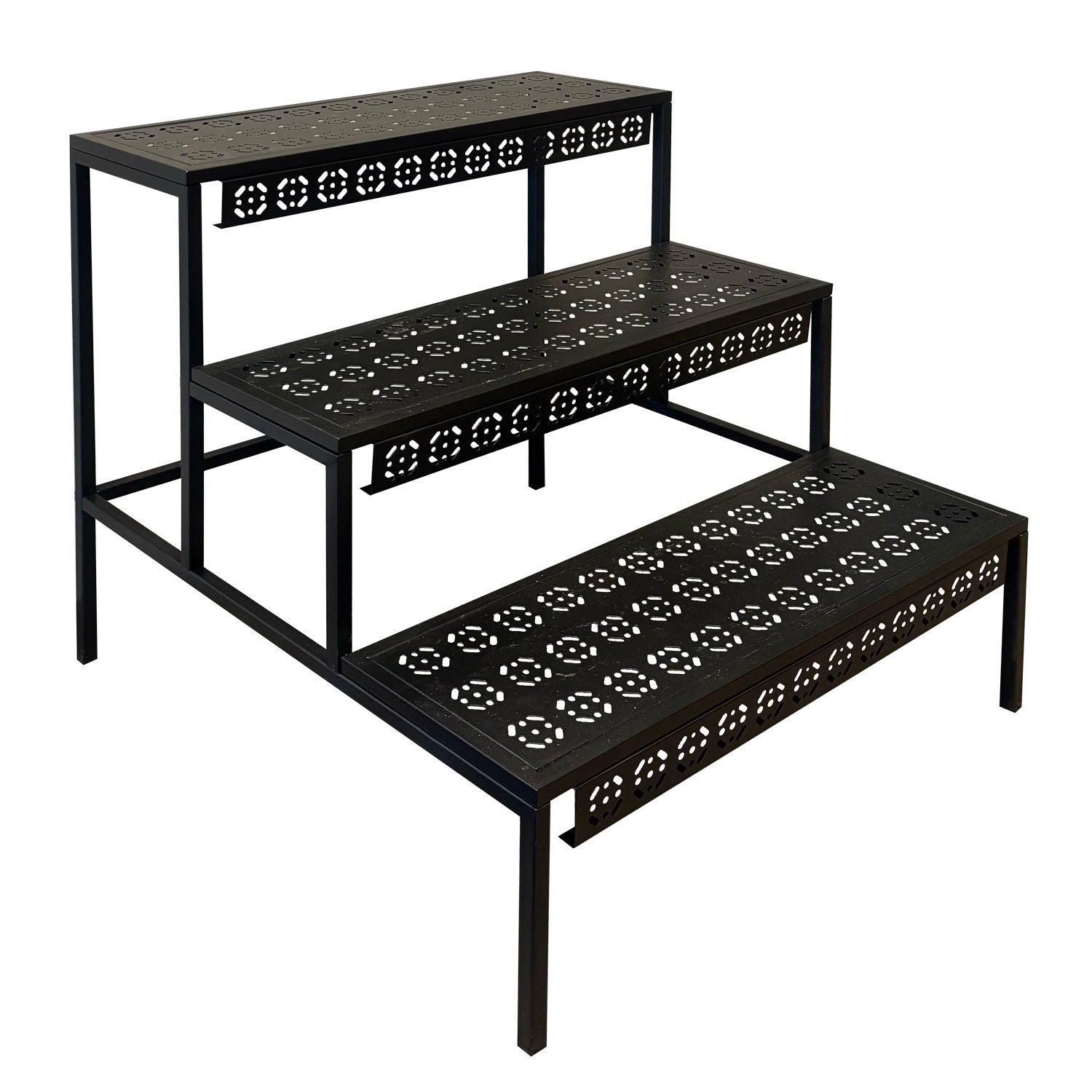 Style: 3-tier straight stand with decorative stamped metal design