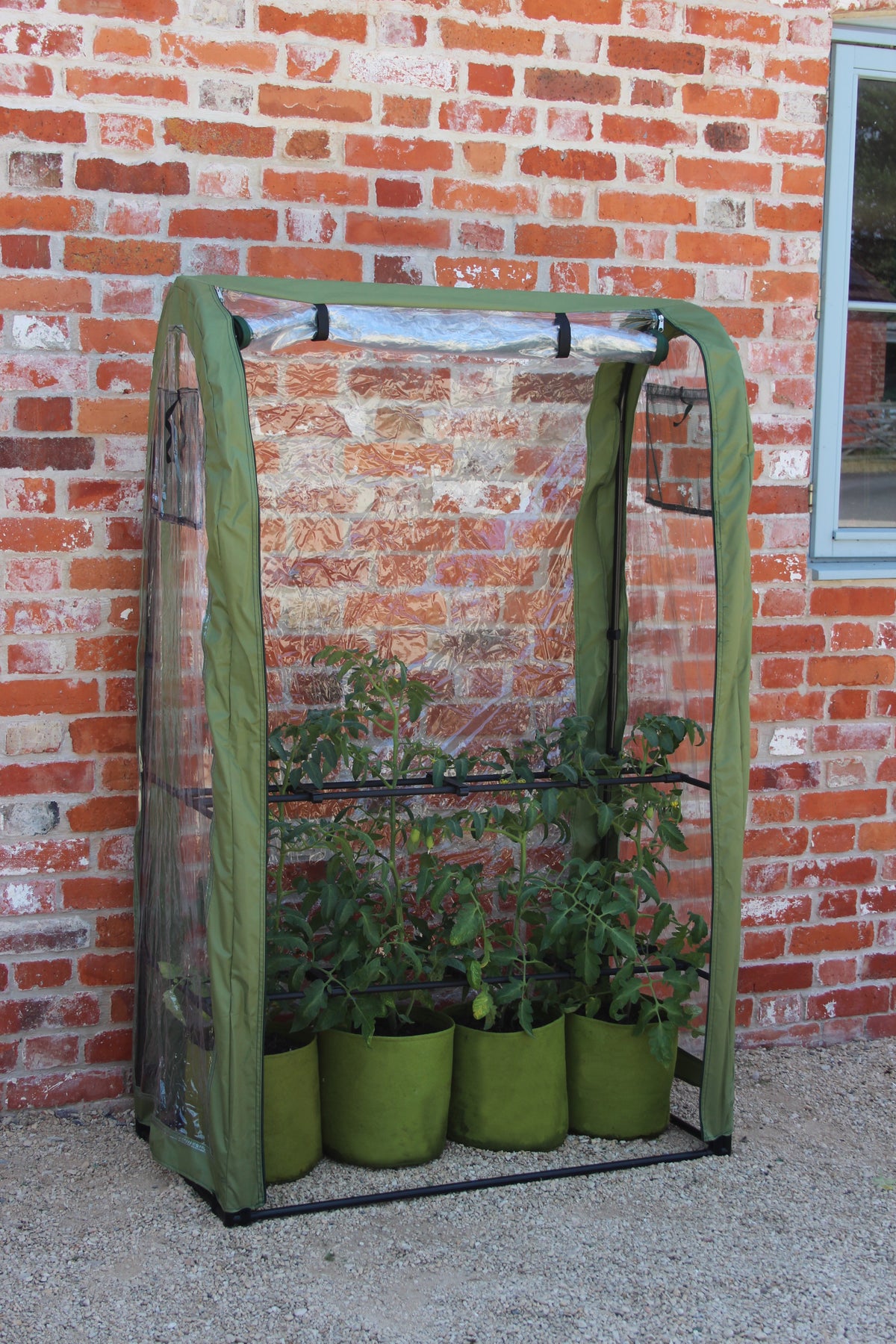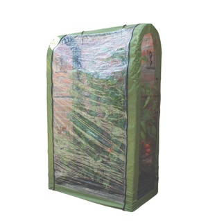 The Tomato Crop Booster is perfect for safeguarding against harsh weather and pests, aiding in fruit ripening and prolonging the growing period. Its innovative structure provides full support to plants, which contributes to increased yields. It is compatible with pots, grow bags, or in-ground plants. Constructed from clear, UV-stabilized PVC, it features robust premium fabric and reinforced edges, complemented by sturdy, chunky zippers designed for daily use. The front opens completely and can be rolled up for convenient plant access, while the vents at both ends are equipped with fine insect netting to ensure proper ventilation. Haxnicks, based in the UK, has been a recognized name in plant protection and cultivation products since 1994. The product dimensions are 40"W x 64"H x 20"D, weighing 5.2 lbs, with a pack size of 1.