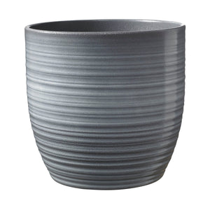 5.1" Light Gray Bergamo Indoor Ceramic Pot. 5 pots per tray must order in tray quantities. 100% waterproof. Made in Germany with 100% rainwater and natural native clay. No drainage holes so no worry about damage to furniture. Just drop in - no need to replant.