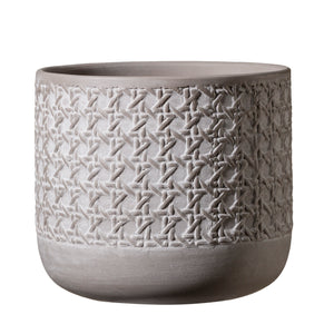 This is more than just pottery it's ceramic art. Featuring Viennese wickerwork in ceramic relief each piece is crafted in Germany using natural native clay. The pottery is completely waterproof with pots fired in the kiln for five hours at 1872 degrees Fahrenheit. All SK pottery is produced using 100% rainwater and any clay residue is recycled back into production. These pots are designed without drainage holes to prevent damage to furniture.