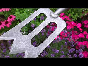 The Mini Spork is more than just a tool; it's an esteemed family treasure. Forged from superior tempered boron steel, its blade resists bending, even when used for heavy-duty tasks. The slots in the blade provide a spring-like effect, and its distinctive cutting edge glides through lawn or soil with ease. It shines when used in confined spaces and is just as capable when dividing large perennials for transplantation. Its patented design, featuring a 40-inch length, minimizes back strain, and it is backed by a lifetime warranty. Specifications: Head - 6 inches long by 4.5 inches wide, Total - 39.5 inches long, Weight - 1.75 pounds.
