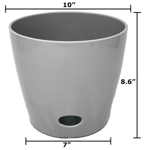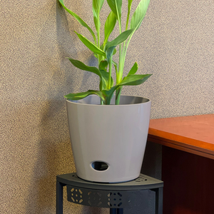 Discover the world's first Self-Watering Pot made from eco-friendly bamboo fiber. This contemporary 10" round pot, blending natural bamboo fiber with corn starch and wood pulp, is fully biodegradable and plastic-free. Bamboo Blooms innovative design promotes robust plant growth, thanks to a unique water well at the base that hydrates and aerates the roots. Ideal for any climate, indoors or outdoors, it simplifies plant care by using capillary action to wick moisture up as needed, preventing overwatering and ensuring strong, healthy plants. Simply maintain the water level in the well, and even those without a natural "green thumb" can enjoy thriving greenery.