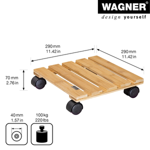 The Bamboo Square Plant Caddy, with its elegant design and eco-friendly materials, is perfect for indoor use. It features twin wheel swivel casters for smooth movement on different surfaces. Wagner, a company situated in the southern part of Germany, close to the Black Forest, is renowned for its outstanding quality. With more than four decades of expertise in design and production, Wagner ensures that all products meet strict safety and durability standards. This plant caddy can support up to 220 lbs and measures 11.4" in diameter and 2.75" in height, weighing only 1.65 lbs.