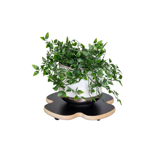 The Wagner Clover Shaped Plant Caddy combines elegance with functionality, featuring hidden swivel casters for smooth and easy movement. Ideal for small to medium-sized pots, it appears to float effortlessly off the ground. Constructed from MDF and finished with a high-grade coating, it ensures lasting durability. Equipped with four soft caster wheels, it's safe for all types of flooring, including laminate, wood, and tile. Designed for indoor use and crafted in Germany, Wagner is a company with over 40 years of experience in design and manufacturing, located near the Black Forest, known for its commitment to quality, safety, and durability. The caddy can support up to 220 lbs, measures 13 inches in diameter by 1.625 inches in height, and weighs 2.8 lbs.
