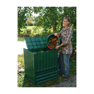 This spacious 158-gallon composter transforms kitchen scraps into valuable compost, enriching your garden with nutrients. It's crafted from 100% recycled, UV-resistant polypropylene. The design includes two large flaps for convenient filling and secure, wind-proof latches to ensure the lid stays put. A foldable bottom door allows for easy compost retrieval. Assembly is a breeze with snap-together panels, and no tools are necessary. Proudly made in Germany, its dimensions are 31.5"L x 31.5"W x 37"H, weighing 27lbs, it's designed to sit directly on the ground.