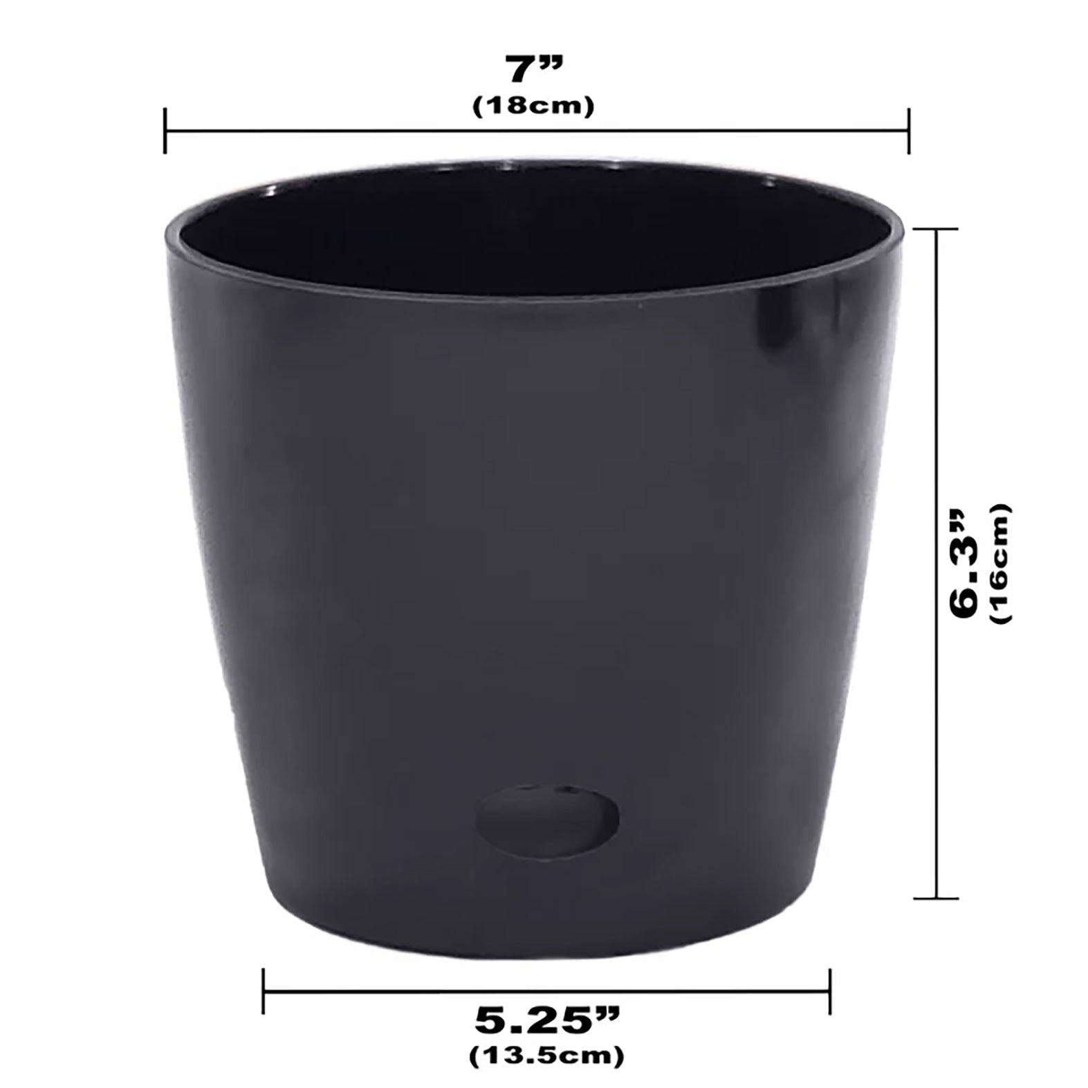7" Black Round Bamboo Self-Watering Indoor/Outdoor Plant Pot