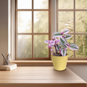7" Pale Yellow Round Bamboo Self-Watering Indoor/Outdoor Plant Pot