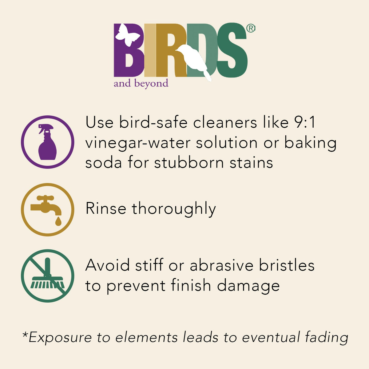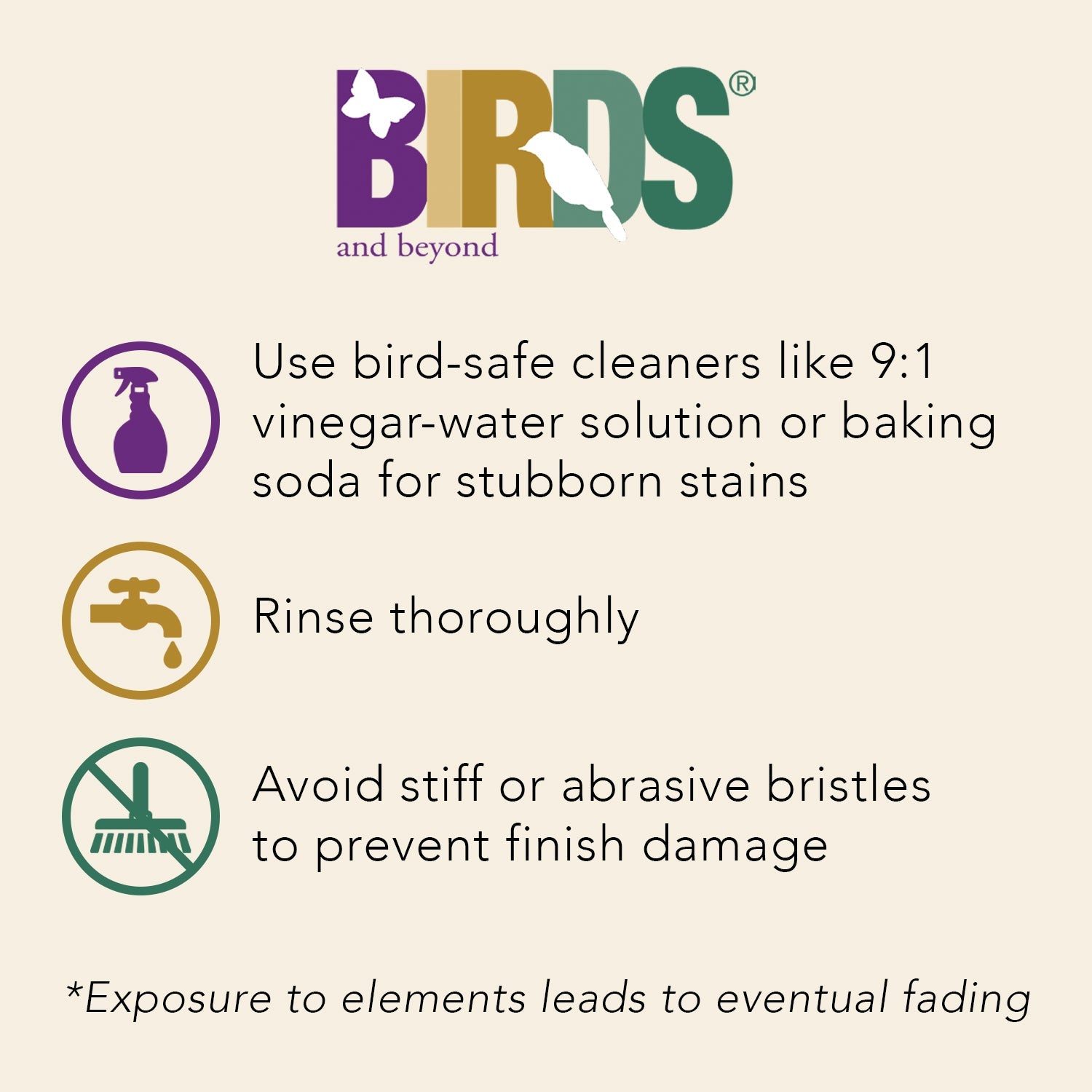 This unique bird bath is a perfect blend of style and strength, combining the elegance of ceramic with the resilience of fiber clay. Crafted from 60% clay, 35% plastic, and 5% fiber, its smooth basin bowl offers UV protection and hassle-free cleaning. The black metal stand features a clever design and is simple to assemble - just unfold the legs, insert the center pin, and place the bowl on the 4 rubber-tipped prongs. No tools required, the bird bath is securely in place and ready to be enjoyed in your garden.