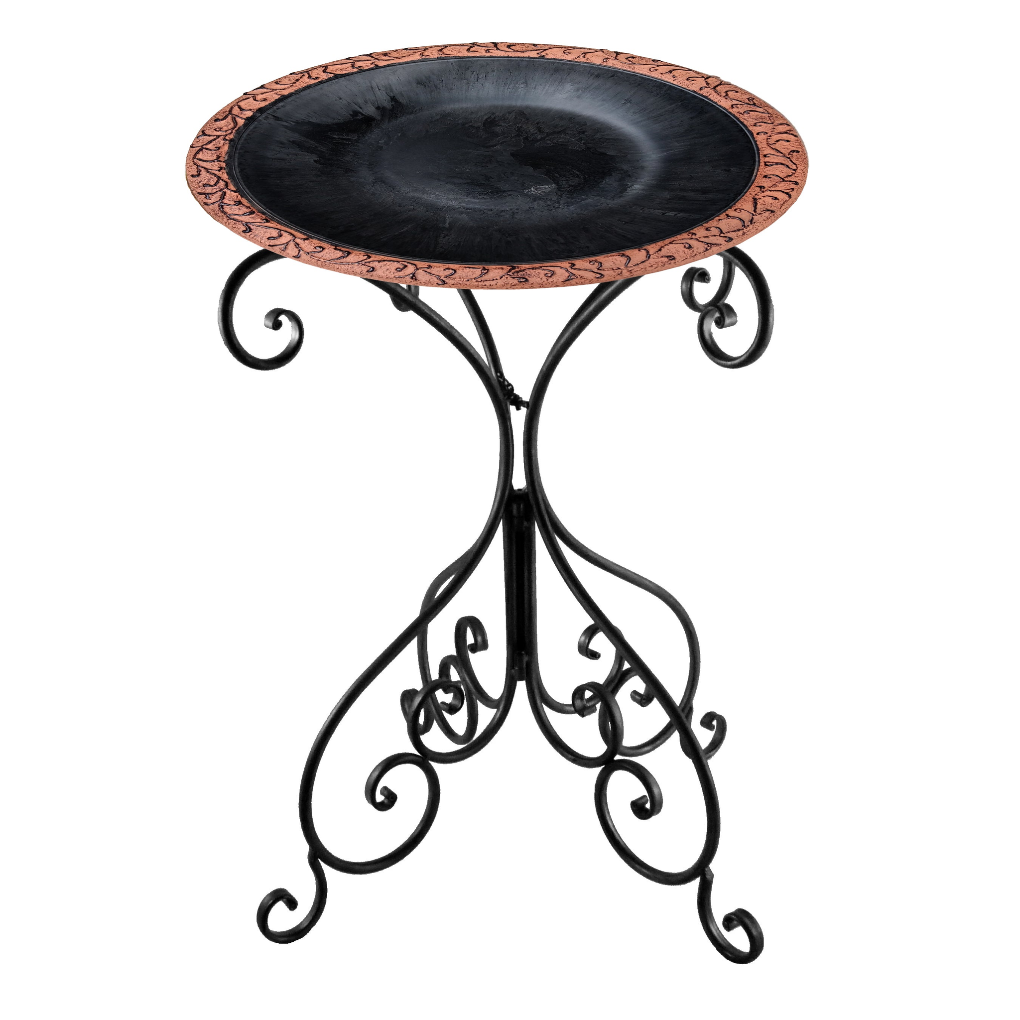 Slate/Wine w/Design Rim Fiber Clay 19" Dia Birdbath Top w/ 25"H Black Metal Stand