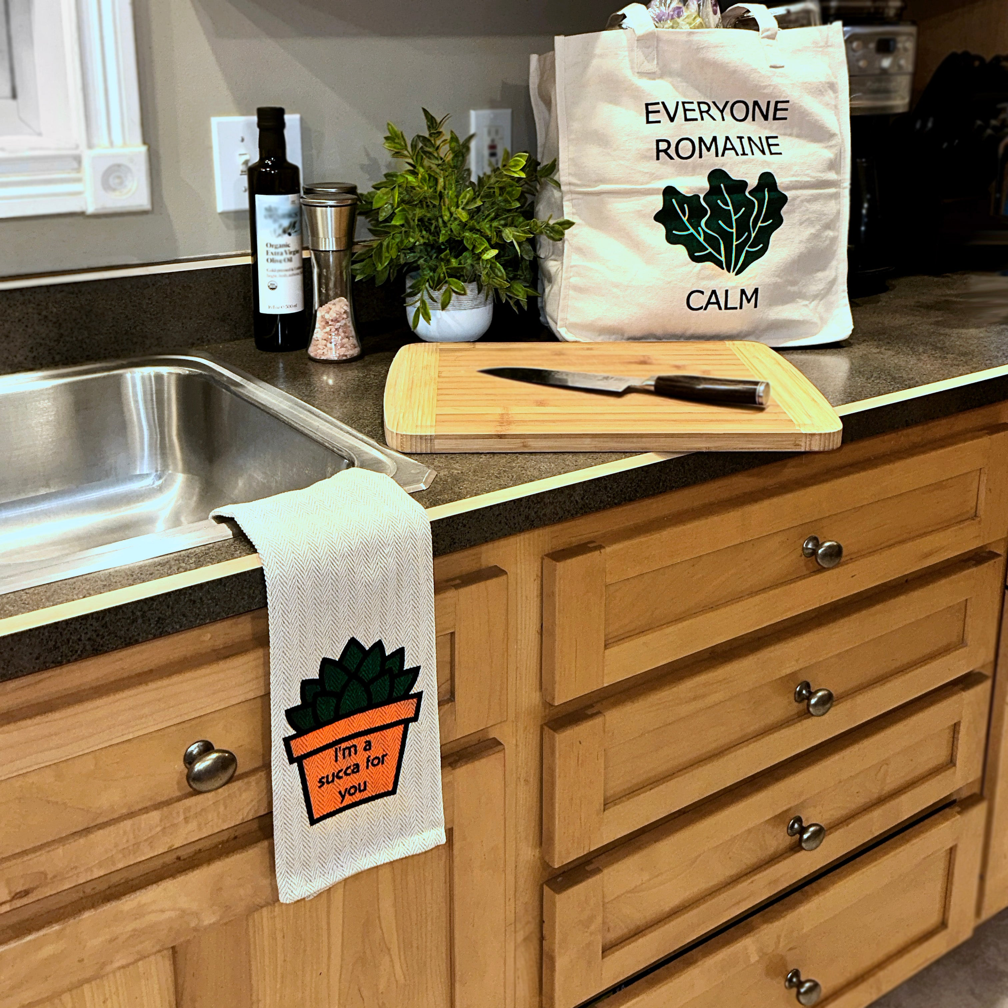 Canvas Reusable Tote Bag, Everyone Romaine Calm, 14" x 14" x 7"
