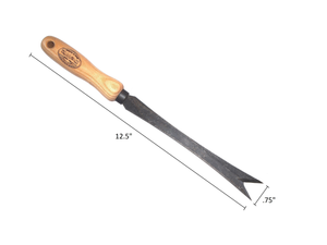The Bio Daisy Grubber - more than just a tool, it's an heirloom! This weeder features a contemporary design and is great for popping up weeds, especially dandelions. It's made from a single piece of hardened boron stamped steel with an ash hardwood handle, making it durable and reliable. It is great for getting into small, hard-to-reach places. Plus, it's eco-friendly and comes with a lifetime guarantee. The head measures .75" in width, the total length is 12.5", and it weighs 0.5lbs.