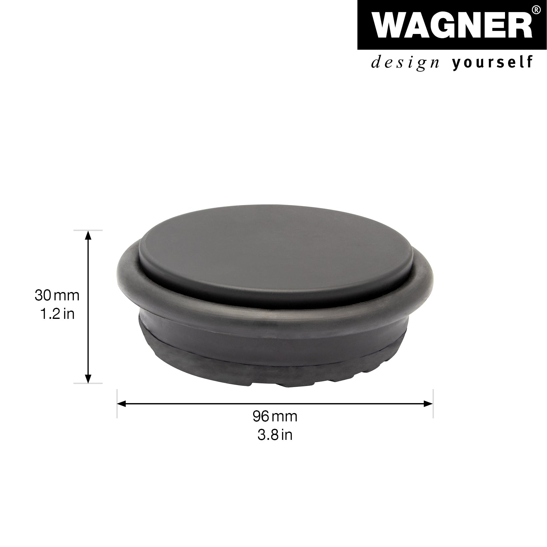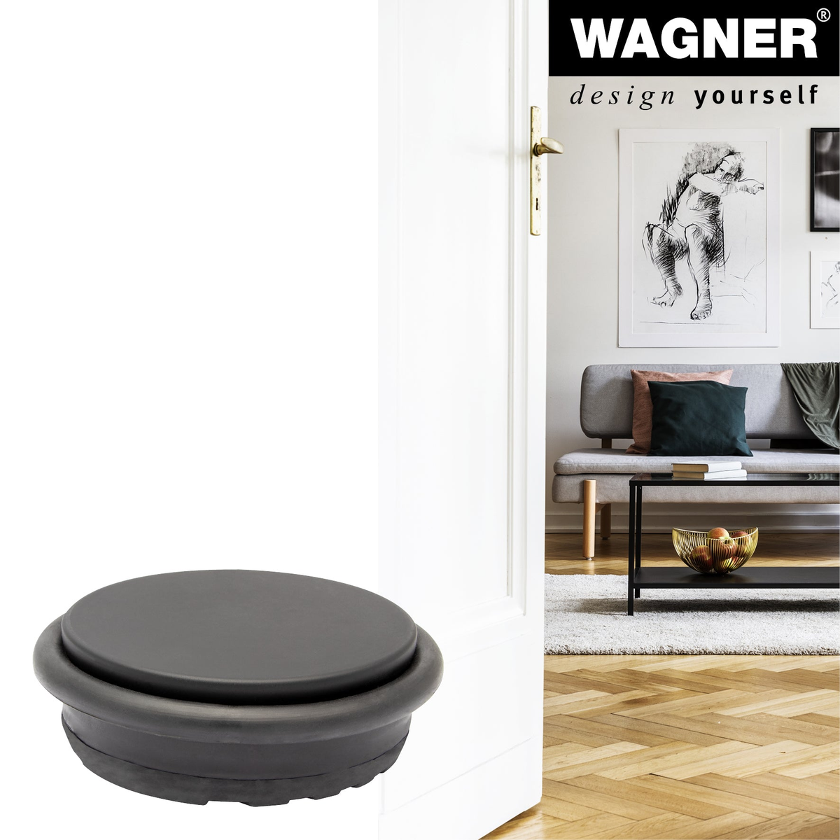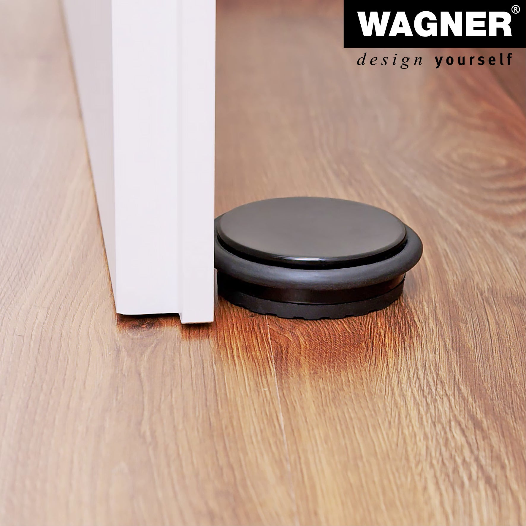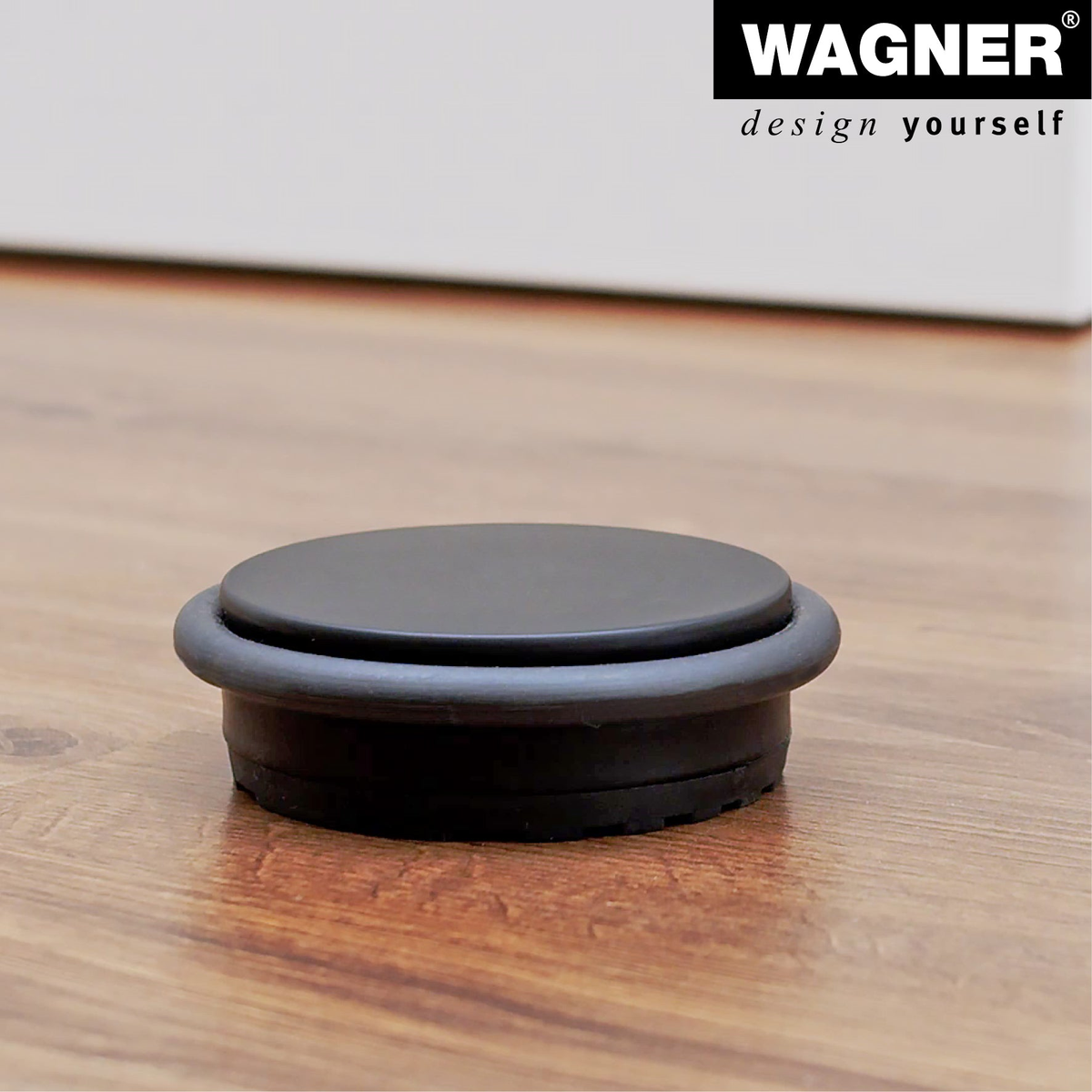 - WAGNER's modern floor doorstop is made from industrial steel for strength and reliability.