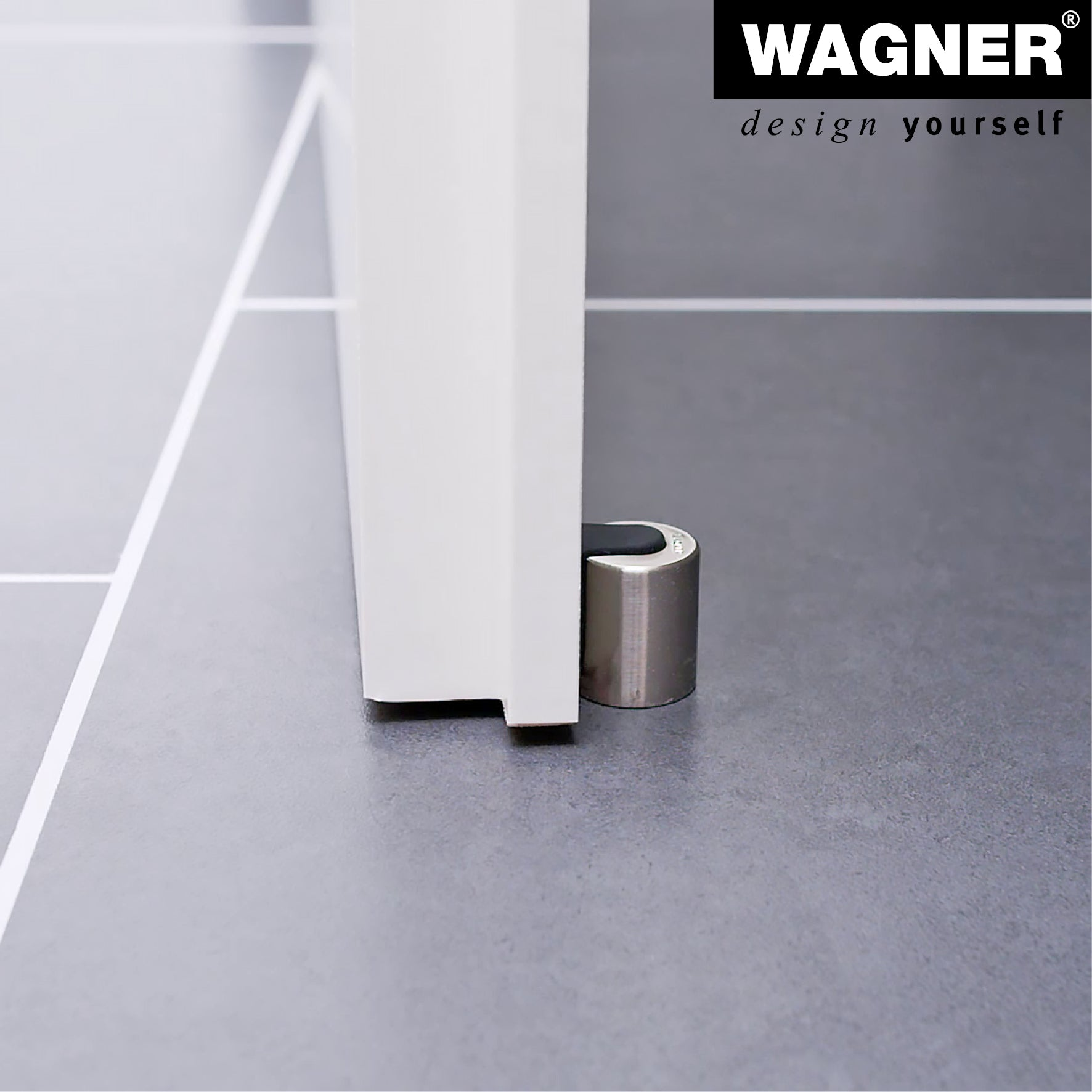 - The WAGNER doorstop combines style and function with its satin zinc body and steel look.