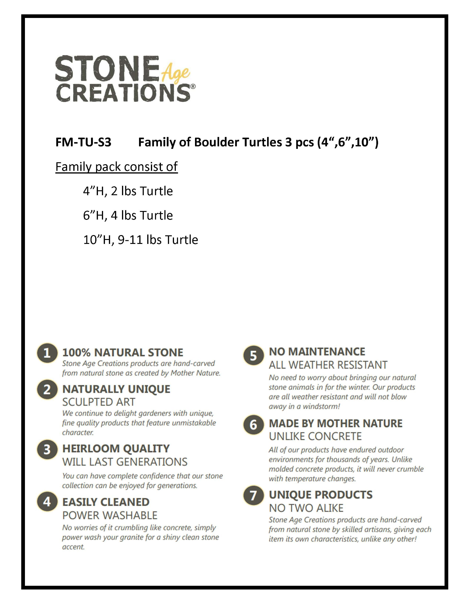 - Add a touch of charm to your garden or home with the Family of Boulder Turtles, perfect for any gift-giving occasion.