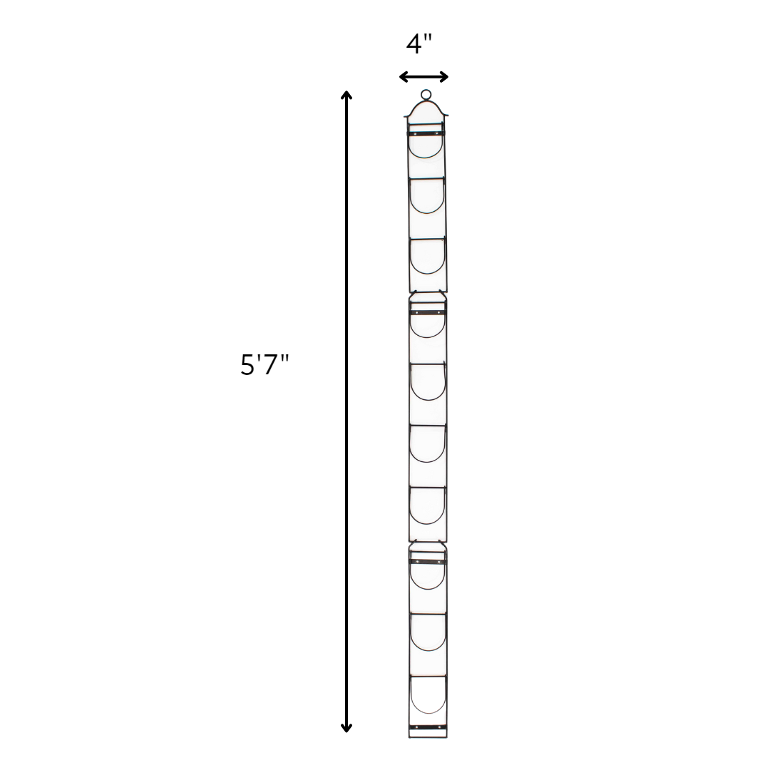 The Italian Style decorative plant holders are crafted from powder-coated steel, ensuring durability and longevity. Simply add pots, and they become ideal for herbs. They are also perfect for flowers, adding charm to a bland wall or for cultivating plants on a balcony with limited space. The necessary hardware for wall attachment is included. These decorative wall plant holders allow you to create an instant vertical garden, infusing life and color into any home. The Tall Wall Plant Holder accommodates ten 4" pots. Pair with Haxnicks bamboo pots, available separately. Dimensions: 5"L x 4.75"W x 67"H; Weight: 3lbs; Pack Size: 1.